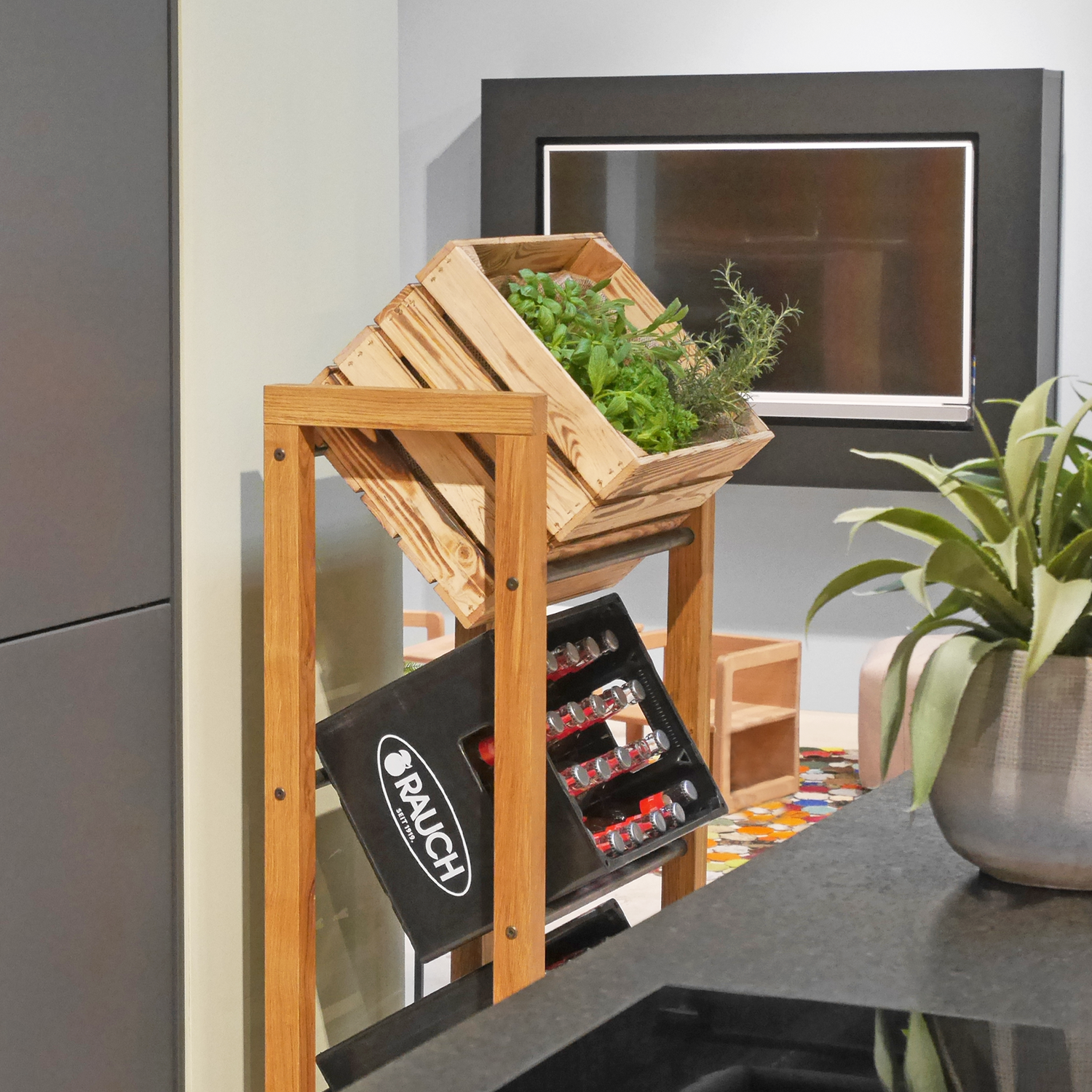 Das VanAlps® Getränkekistenregal kann auch wunderbar als Kräuterregal verwendet werden. Mit der VanAlps® Edelstahlablage bietet dieses Regal auch eine tolle Abstellmöglichkeit für diverse Dinge.